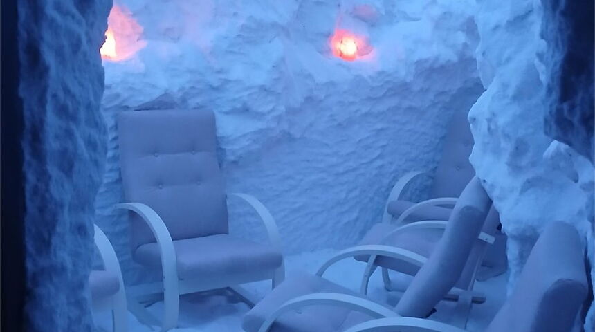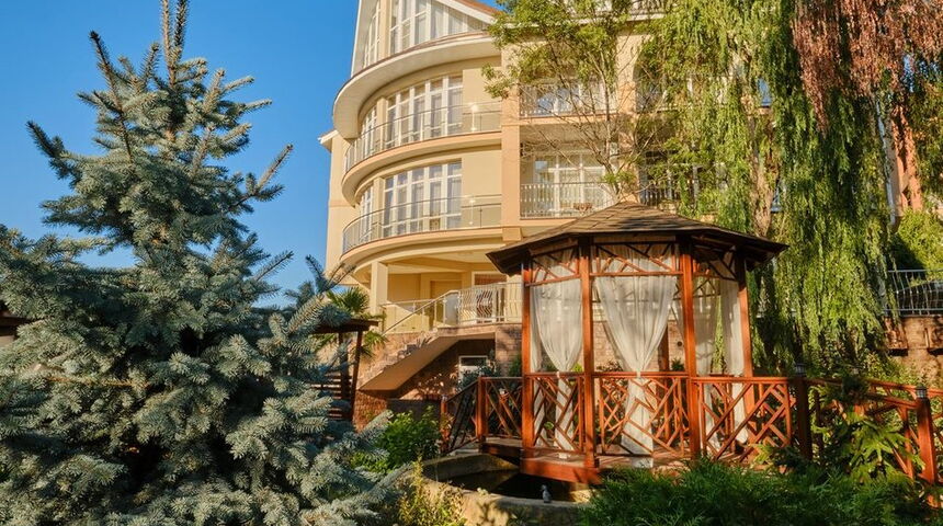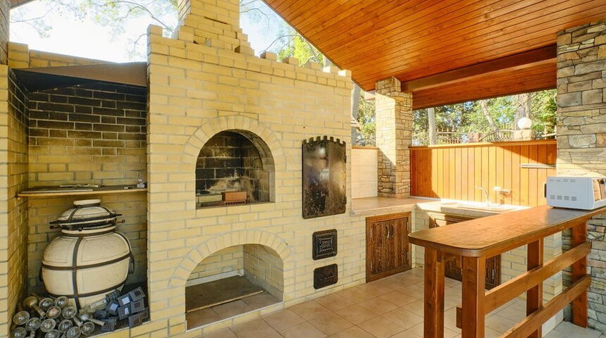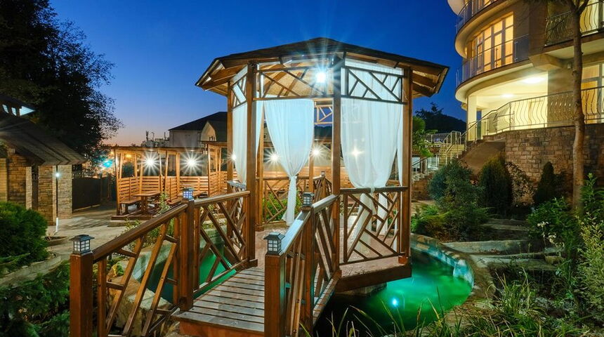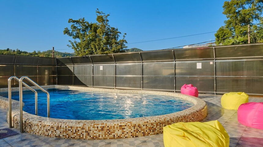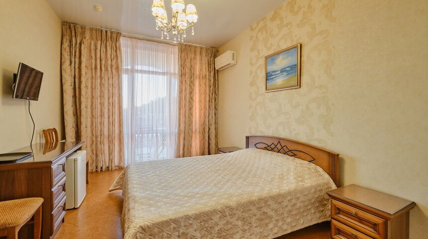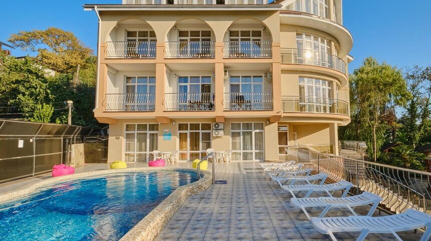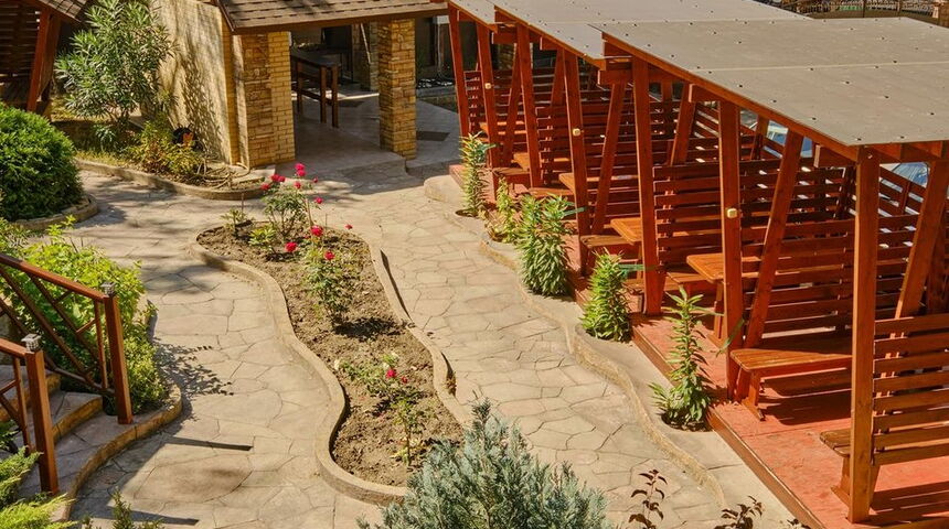 На пляже есть навесы, кабинки для переодевания, лежаки и шезлонги.