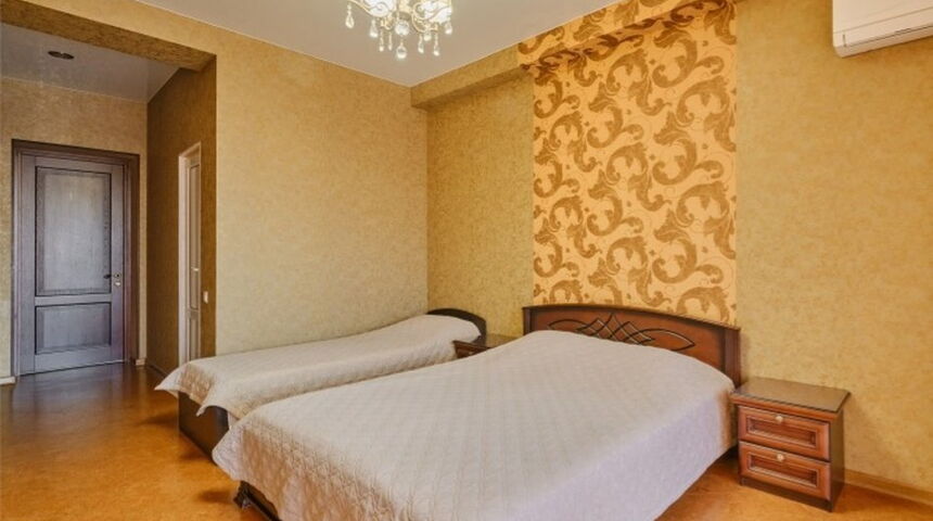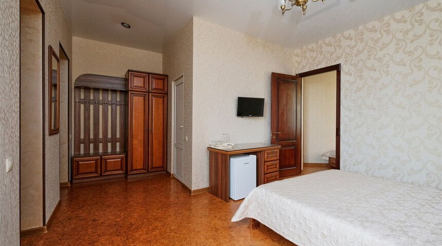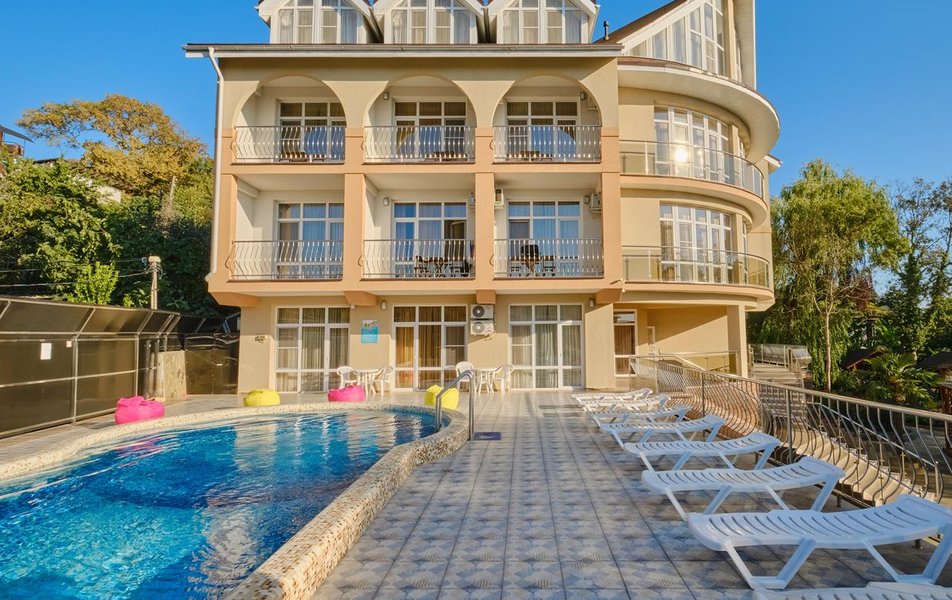 Пятиэтажный корпус отеля, оснащенный лифтом, разместился на закрытой благоустроенной территории с внутренним зеленым двориком. Жилой фонд рассчитанный на 90 человек, предлагает гостям современные комфортабельные номера. В каждом имеется санузел с душем ,кондиционер, телевизор, мини-холодильник, фен, а из некоторых комнат открывается вид на море.