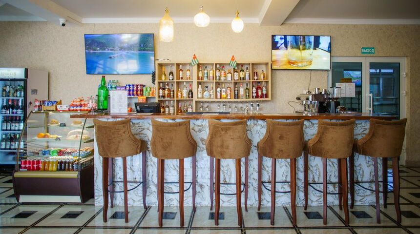 Отель расположен в сердце города в лоне зеленых гор Северного хребта и Черного моря, недалеко от железнодорожного вокзала. В шаговой доступности - кафе, рестораны, аквапарк. До исторического центра, Старой Гагры, замка принца Ольденбургского и знаменитого ресторана Гагрипш можно доехать за 15 минут на авто. В часе езды такие знаменитые природные достопримечательности, как озеро Рица, Бзыбское ущелье, водопад Девичьи слезы.