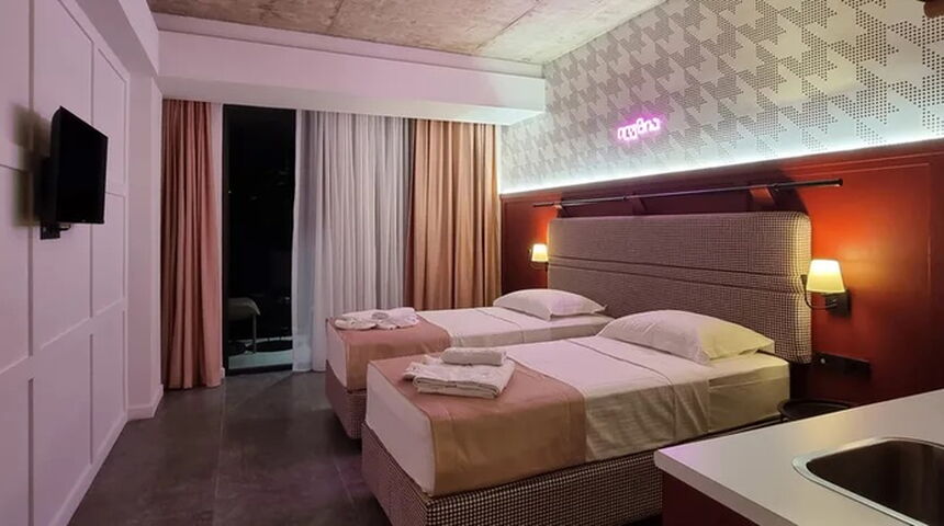 Современные номера с хорошим ремонтом и мебелью. В номерах есть: кондиционер, холодильник, мини-бар, телевизор с плоским экраном, платяной шкаф и собственная ванная комната, а также предоставляются постельное белье и полотенца. В некоторых номерах есть небольшая кухонная зона с раковиной (без плиты). В распоряжении всех гостей холодильник.  В ванной комнате есть душ, бесплатные туалетно-косметические принадлежности и фен. Балконы с видом на море или на улицу.