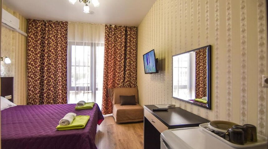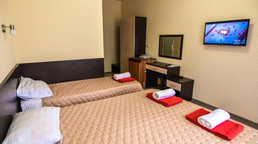 Гостей ожидают номера Стандарт разной вместимости. Комнаты, оформленные в классическом стиле, оснащены всем необходимым - удобным мебельным гарнитуром, кондиционером, бытовой техникой, санузлом с душем. В номерах есть балконы, откуда открываются живописные виды на горы. |