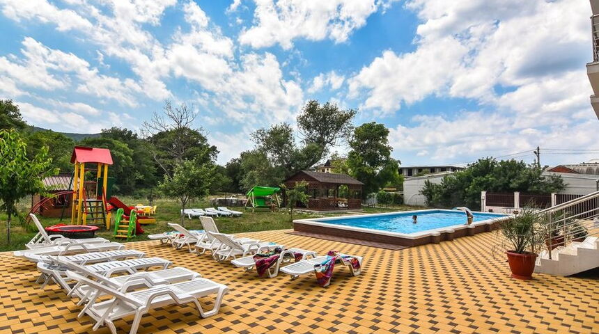 На благоустроенной территории отеля расположен открытый бассейн и детская игровая площадка.