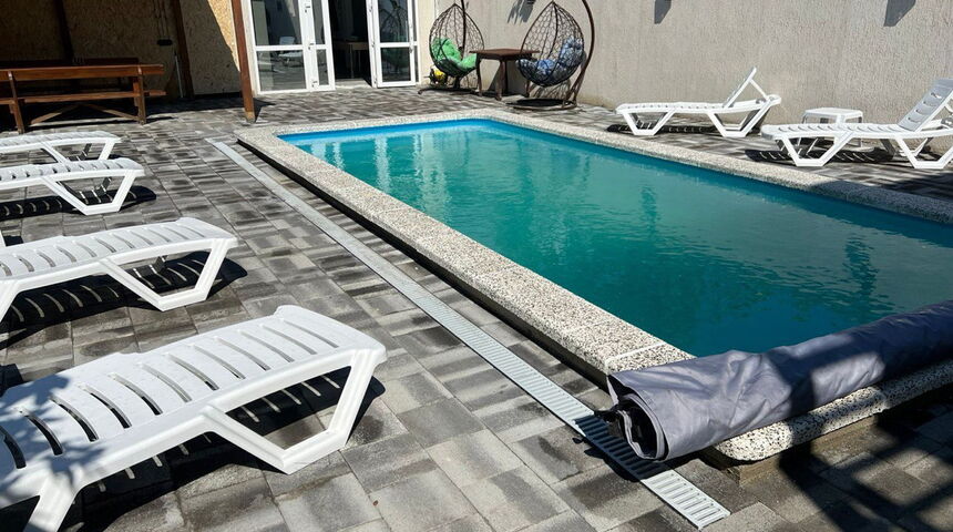 На территории располагается беседка, мангал-барбекю, бассейн, детский уголок и общая кухня.