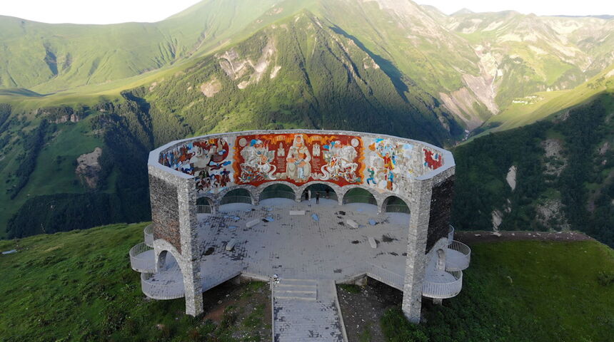 Смотровая площадка Арка Дружбы народов, где открывается потрясающий вид на ущелье Арагви и самый бесподобный вид на круглую гору Микети;