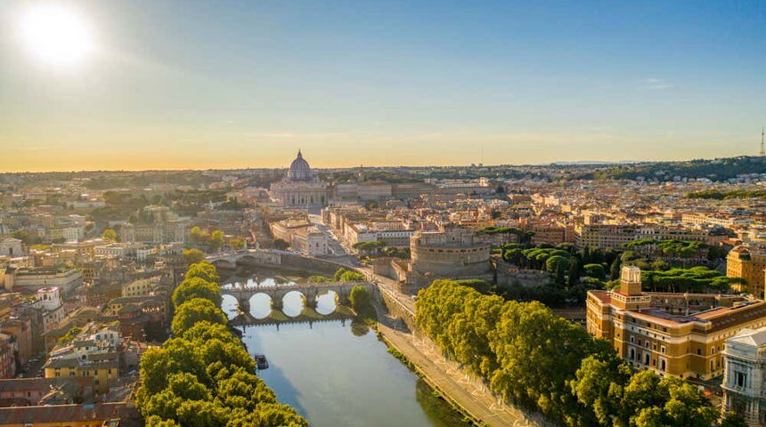 Переезд (~170 км) в Рим – столицу Италии. Только представьте, что когда на территории вашего родного города в лучшем случае несколько племен лепили из глины горшки под навесами из шкур, в Риме не могли определиться, какими колоннами лучше украсить новый храм во имя Минервы – коринфскими или ионическими. И не удивительно, что все дороги вели в Рим: здесь в грандиозных амфитеатрах подавали зрелища, а в многочисленных тавернах к хлебу наливали вино.