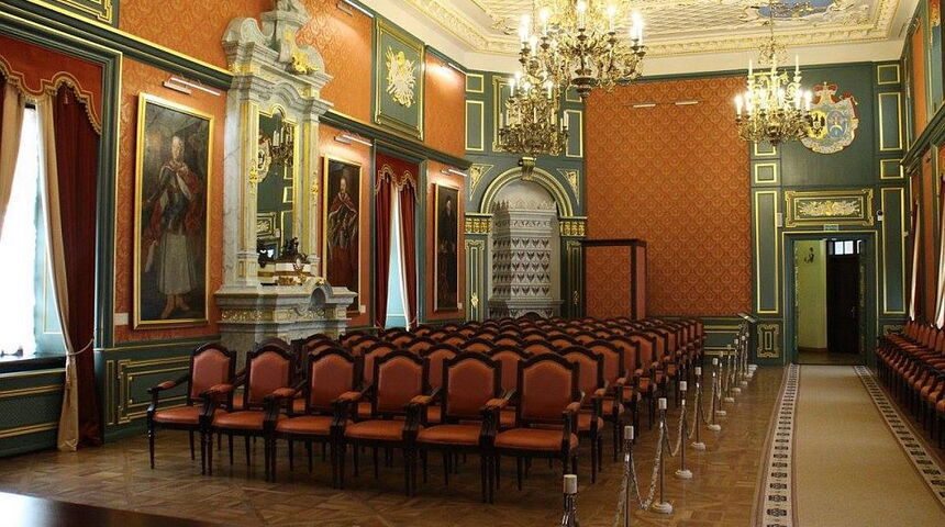 Экскурсия По Замку начнется с ис­то­ри­че­ской ча­сти — Рад­зи­вил­лы, Витгенштейны, Святополк-Мирские — оста­ви­ли яр­кий след не толь­ко в ис­то­рии зам­ка, но и в ис­то­рии стра­ны. По­гру­же­ние в ат­мо­сфе­ру их жиз­ни на­чи­на­ет­ся с под­ва­лов, где хра­ни­лись съе­ст­ные при­па­сы и вин­ные по­гре­ба, и за­кан­чи­ва­ет­ся парадными залами, утопающими в рос­ко­ши ро­ко­ко… Ос­нов­ное па­рад­ное по­ме­ще­ние двор­ца эпо­хи Ренессанса — огромная Столовая с кес­сон­ным по­тол­ком и ме­бе­лью кон­ца XVI в. Изысканный Порт­рет­ный зал, оформленный в сти­ле ро­ко­ко, вы­пол­нял ре­пре­зен­та­тив­ные функ­ции и сви­де­тель­ству­ет о древ­но­сти ро­да Рад­зи­вил­лов, его ры­цар­ской и во­ен­ной сла­ве. Через наи­бо­лее значимые экс­по­на­ты экс­по­зи­ции зам­ка Вы узна­е­те о быте и обычаях княжеского до­ма Рад­зи­вил­лов, ис­то­рии на­шей зем­ли…