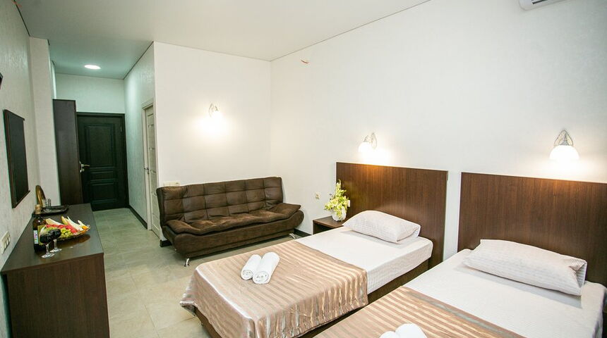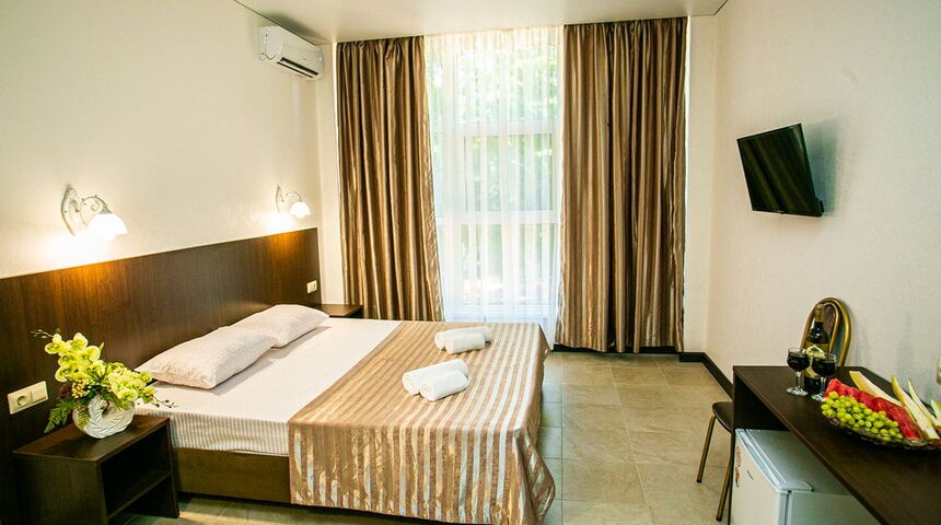 В распоряжении гостей 30 современных комфортабельных номеров. Дизайн отеля ориентирован на комфорт посетителей и гармонично сочетает национальные мотивы с домашней атмосферой. Все номера оборудованы двуспальными кроватями с ортопедическими матрасами, телевизорами, тумбочками, шкафами, мини-холодильниками, сейфами, ванными комнатами, душевыми с фенами и необходимыми косметическими принадлежностями для гостей. Также в номерах установлены кондиционеры с функцией обогрева и охлаждения для комфортного пребывания в любое время года. Предусмотрены дополнительные места, такие как диваны-кровати или кресла-кровати, что позволяет удобно разместиться большой семье или компании друзей во время отдыха.