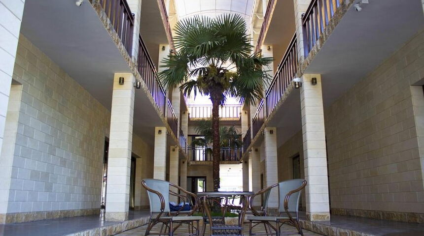 Отель привлекает возможностью полноценного семейного отдыха. Двухэтажный отель напоминает классическую виллу, украшенную колоннами, широкими балконами, симметричными внешними лестницами. Гостиница находится на закрытой охраняемой территории. Во дворе – зеленые лужайки, места для отдыха, роскошные пальмы. Дизайн внутренних помещений и номеров соответствует представлениям о современном комфорте: приятные тёплые тона, удобная мебель, кондиционеры, сейфы и телевизоры.